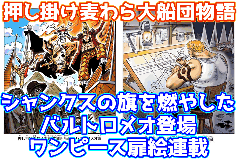ルフィは大好きなシャンクスのことをバカにした山賊ヒグマの怒りを買い、海に投げ込まれ巨大魚に食われそうになったところを、シャンクスが片腕を犠牲にしながら助け出してくれた。ルフィは村を去るシャンクスからトレードマークの麦わら帽子を託され、将来立派な海賊になり再会することを約束するのだった。